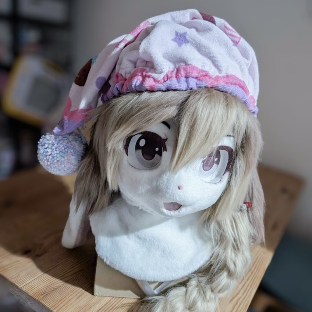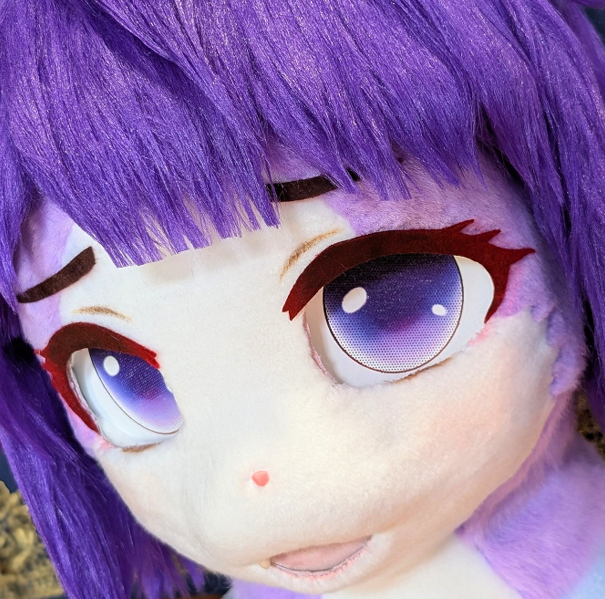 ヘッドに磁石を埋没することで、表情差分まぶたやほっぺを追加できます。眼鏡は、超小顔の場合人間用のものを合わせられる場合がありますが、着ぐるみサイズものも作れます。